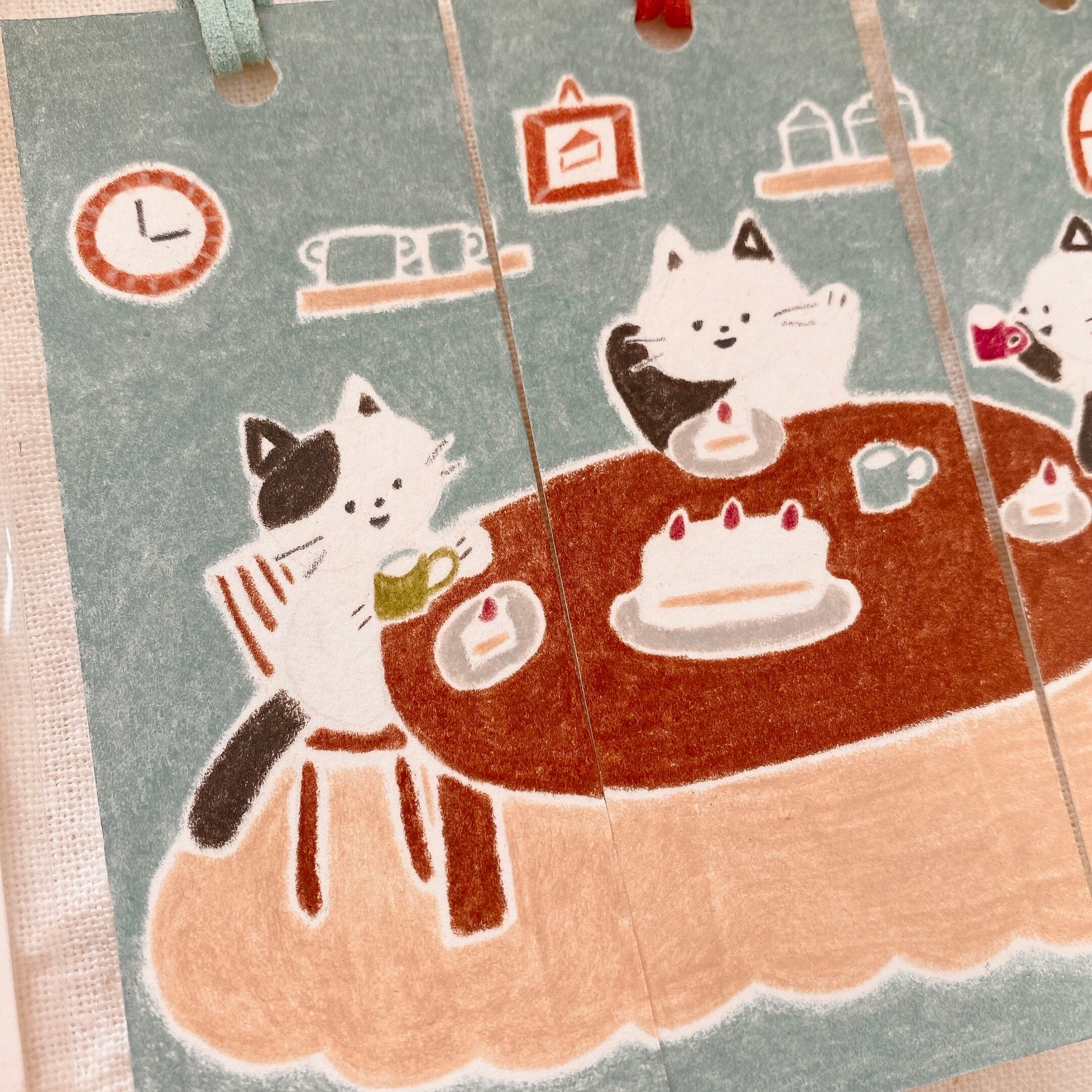 お茶会をしているネコたちの栞。